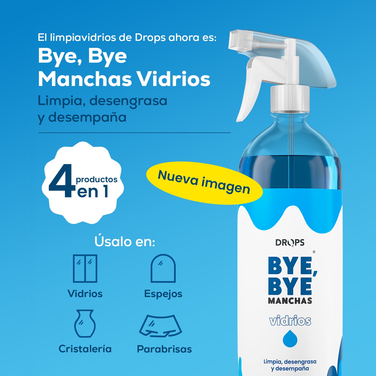 Úsalo en mesas, ventanas, canceles de baño, parabrisas, espejos y más.
